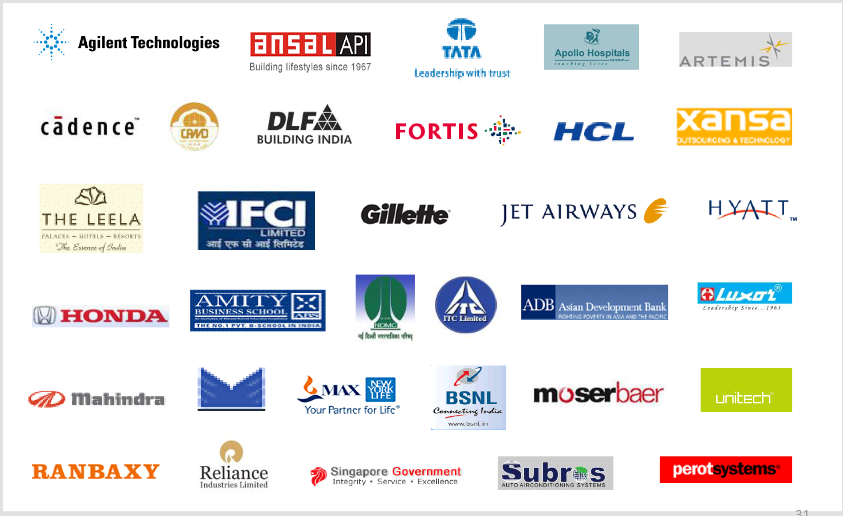 In India, the Group has been successful in construction of real estate properties including hotels, townships, hospitals, commercial complexes and residential towers with clients such as Ansal, DLF, Apollo, ITC, Mahindra, HCL, DMRC and Fortis.